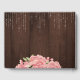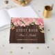 Rustic land stil-personlig gäster bok med stora rosa-peonier och twinkle-ljus på mörkens bruna lada-träbakgrund. Idealisk för sommaren | trädgård | hösten | elegant land | Bakgårdsplats utanför dörren, bröllop.