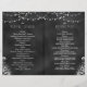 © Sunny Mars Design. Sträng av Ljus Black Chalkboard Bi-Fold Bröllopsprogram - Trendig, formella bröllopsprogram med en vacker svart ritbordsbakgrund som har lökar av rep eller ljus som hänger ovanför med en tropisk blommigt nedan.