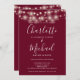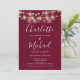Med söt string ljus och namnteckning stil namn kan den här elegantens burgundinbjudan till bröllop vara personlig med all information om den speciella bröllopsdagen på motsatt sida, inklusive din OSA, logi och ytterligare information. Designad av Thisisnotme©