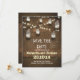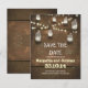 Perfekten sparar datumkortet med rustik brun träbakgrund, sträng ljus och mousserande burk. Kontakta mig om du behöver hjälp med anpassning eller om du behöver hjälp med en begäran från anpassningsbar färg.