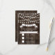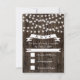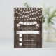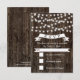 Strängning av ljus och vintage på det gamla bröllop OSA-/svarskortet/svarskortet på sommaren med en vit banderoll med brun kontur på den gamla bruna träbakgrunden. Denna moderna och trendig bröllop-träkonstruktion med vintage inslag ingår i en uppsättning eller samling av bröllop, är fullt anpassade och är perfekt för en utomhussommarnattsaga western bröllop. Observera att det inte finns något riktigt trä bara för tryckt bilder.