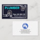 Ett blått hölje har en rör-utformning med Faux silver-rörsystem. Över i det övre hörnet ljuger ditt cyanblå företag namn PLUMBER som du kan byta till kostym för dina egna servicebehov. I det nedre hörnet finns er prestigefyllda namn och kontaktuppgifter. På andra sidan, i ett vitt omslag, är överst en blå logotyp som du kan använda följt av ditt prestigefyllda namn, kontaktinformationen och ett sloganalternativ för att publicera dina tjänster. Ett underbart kort för rörmokerteman.