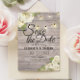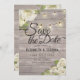 Spara datummallarna för inbjudningskortet för bröllop - Vit ros Blommigt och String Ljus på Rustic Wood Background. En Perfekt för din stora dag! Alla textstorlekar i Stil, Färg kan anpassas efter dina behov.