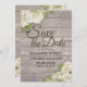 Spara datummallarna för inbjudningskortet för bröllop - Vit ros Blommigt och String Ljus på Rustic Wood Background. En Perfekt för din stora dag! Alla textstorlekar i Stil, Färg kan anpassas efter dina behov.