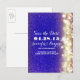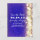 Strängen glitter i ljus guld och blå spara datumet meddelande vykort