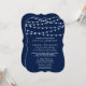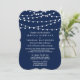 Strängen ljus på marinblått bröllop är en fantastisk elegant med vackra vita hängsträngar ljus på marinblå bakgrund, som är perfekt för alla moderna bröllop firande. Dessa inbjudningar kan vara en personlig för ert särskilda tillfälle och skulle göra perfekten känd för er bröllop, möhippa, förlovningsfest, födelsedagsfest och många fler särskilda tillfällen. Lägg till anpassningsbarnas ordalydelse i den här designen genom att använda rutorna "Redigera den här designmallen" på objektets höger eller klicka på den blå "Anpassa den" om du vill ordna texten, ändra typsnitt och färg och även lägga till ytterligare information om bilder i den här designen.