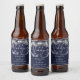 Strängljus Blommig Marinblå Bröllop Ölflaska Etikett