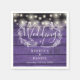 Dessa stilfulla servetter med fina strängljus och en handritad blomma kan anpassas med din information i snyggt vit bokstav på en rustik bakgrund av lila träpaneler. Designad av Thisisnotme©