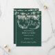 Ett stilrent smaragdgrönt spara-datum-kort med fina strängljus och känsliga blommotiv på svart bakgrund. Personifiera med din speciella spara-datum-information. Designad av Thisisnotme