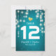 Bröllop Plats / Bord Nummer / Eskortkort Mallar - Eleganta Vintage Strängljus med Turkos Blå Glitter Gnistrande Bakgrund.