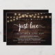 Vacker Inget fancy, bara kärlek fest, Bröllop Elopement kungörelse / Inbjudningskort, i Modern Rustik Brun Mörk trä, Strängljus design. Detta är perfekt för din bröllopsmottagning och efterbröllopsfirande. Lägg till dina detaljer i matchande typsnitt / bokstäver.