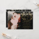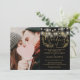 En svart och guld bröllopsinbjudan med vackra strängljus och en delikat handritad rustik blomsterkrans av botaniska bladverk med stilfullt skrivstilstypsnitt. Personifiera med all din speciella bröllopsdagsinformation på baksidan, inklusive din RSVP, boende och ytterligare detaljer. Designad av Thisisnotme©