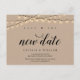 Det här är de moderna minimala rena rustika strängljusen, Kraft-design tema, i svart teckensnitt, Bröllopsinbjudan Uppflyttad (uppskjuten / uppskov) vykort (Spara det nya datumet). Det är det perfekta och eleganta sättet att meddela om ändringen till dina vänner och familj.