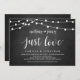 Vacker, ingenting fancy, bara kärlek, Bröllopsannonsering / Bröllopsinbjudan i modern rustic design, lantliga strängljus, kritbrädtema. Detta är perfekt för din bröllopsmottagning och efterbröllopsfirande. Lägg till dina detaljer i matchande typsnitt / bokstäver.