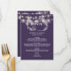 Med fina strängljus och rustika blomsterkransar handritade illustrationer, kan du anpassa denna stilrena lila meny med din speciella bröllopsdags menyinformation. Designad av Thisisnotme©