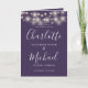 Lila signatur skript bröllopsprogram med vackra strängljus och chic modern typografi. Detta stilrena bröllopsprogram kan anpassas med din speciella bröllopsdagsinformation. Designad av Thisisnotme