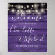 Strängljus Lila Trä Bröllops Välkomstskylt Poster