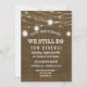 Lantlig landsbygd, murade krukljus årsdag löfte förnyelse inbjudan - shabby, gammal lantlig säckväv utseende bakgrund. Toppen är prydd med lantlig landsbygd, vintage mason kruka lyktor och romantiska utomhus strängljus. Läser 'Vi gör fortfarande' i västerländsk stil bokstäver med 'Löfte förnyelse' nedan och årsdag år ovan i böjda bokstäver. Årsdag fest detaljer, inklusive RSVP-information, finns nedan. Baksidan har matchande lyktor och säckväv bakgrund. Obs! Alla bilder är tryckta. Använd knappen Anpassa den för att ändra något - teckensnittsstilar, storlekar, färger eller placering. Chic landsbygd inbjuder till utomhus lantlig årsdag fest, lada br