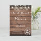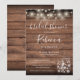 En rustik bröllopsinbjudan med vackra strängljus och murade krukor med stilfull script-typografi, på en rustik trädgårdsbakgrund. Designad av Thisisnotme©