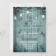 Rustika inbjudningskort för årsdag och förnyelse av vigsel - gammalt, vintage, tealfärgat utseende strandbrädor i trä bakgrund. Toppen är prydd med hängande rustika lanthandels-'glödande' vintage mason-jarl lanternor och romantiska utomhusbelysningar. Läser 'We Still Do' i västerländsk stil med 'Vow Renewal' under i teal bokstäver och årsdag år ovan i böjda bokstäver. Årspartys detaljer, inklusive RSVP-information, finns nedan. Baksidan har en koordinerande, enfärgad teal bakgrund, som kan ändras till valfri färg du föredrar. Obs! Alla bilder är tryckta. Använd knappen Anpassa för att ändra något - teckensnittsstilar, storlekar, färger eller placering. Romantiska lanthandelsinbjudningar för sommar eller höst, utomhus rustika årsdagsfirande, strandbr