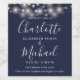 Med vackra strängljus och stiliga namnteckningar i elegant stil kan denna eleganta bröllopsetikett i marinblå färg för vin personaliseras med din information i elegant bokstavsstil. Designad av Thisisnotme©