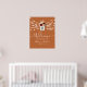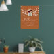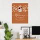 Välkommen till vårt rustika eleganta bröllop! Denna charmiga affisch har en bränd orange bakgrund med en bohemisk touch, accentuerad av ett burgunderrött och persikofärgat färgschema. Mittenpartiet är en blomsterfylld masonburk som visar parets initialer i elegant modern kalligrafi. Strängljus lägger till ett varmt, inbjudande sken och sätter den perfekta tonen för vår speciella dag.