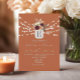 Bjud in dina gäster till en verkligt speciell tillställning med vår eleganta formella bröllopsinbjudan som omfamnar rustik lantlig charm i rika orange nyanser. Prydd med ett monogram och ömtåliga vattenfärg burgunderfärgade blommor i murarljusglas, kompletterat med det mjuka skenet från strängljus och färdigt med trendig kalligrafiskrift. Det sätter scenen för en oförglömlig fest fylld med värme och kärlek.