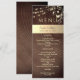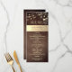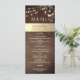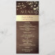 Ge värme och charm till din mottagning med detta eleganta rustika träkort för bröllopsmeny, med känsliga gyllene blomsterdekorationer och gnistrande strängljus. Perfekt för romantiska höst- eller vinterbröllop, ger denna design en mysig men ändå raffinerad touch till din dukning. Anpassa med dina menyval och bröllopsdetaljer för att skapa en minnesvärd matupplevelse som dina gäster kommer att älska.