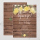 Med vackra strängljus och söta citroner på en rustik trädgalleri, kan denna roliga och stiliga bröllopsinbjudan anpassas med din speciella evenemangsinfo och dina initialer på baksidan. Designad av Thisisnotme