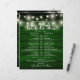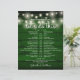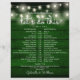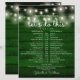Denna rustika strängljus bröllopsschema-tidslinje kan anpassas med dina bröllopsdetaljer i elegant vit bokstav på en smaragdgrön träpanel bakgrund. Designad av Thisisnotme©