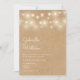 En stilfull rustic bröllopsinbjudan med fina strängljus ovanför det lyckliga parets namn i en elegant handskrift ovanför detaljerna om det speciella bröllopet på en rustic kraftbakgrund. Baksidan har en matchande rustic kraftbakgrund. Designad av Thisisnotme