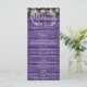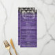 Eleganta strängljus blommig bröllopsmeny kort med signatur stil namn, detta moderna meny kort kan anpassas med din information i chic vit bokstav på en rustik lila trä bakgrund. Designad av Thisisnotme