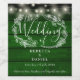 Med vackra strängljus kan denna eleganta bröllopsetikett anpassas med din information i elegant bokstavsstil på en rustik smaragdgrön träpanelbakgrund. Designad av Thisisnotme©