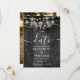Detta eleganta strängljus rusticerade svarta trä ladugård boho bröllop spar-datum kort kan anpassas med din information i chic typografi och speciellt foto på baksidan. Designad av Thisisnotme©