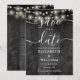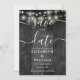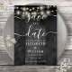 Detta eleganta strängljus rustic svart trä lada boho bröllop save-the-date-kort kan anpassas med din information i chic typografi. Designad av Thisisnotme