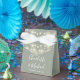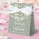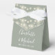Elegant salviagrön bröllopspresentbox med vackra strängljus, stilren signaturskriptnamn och speciellt datum i modern typsnitt. Du kan anpassa med ditt eget tackmeddelande under locket. Ett perfekt sätt att tacka dina gäster! Designad av Thisisnotme