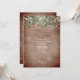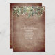 Strängljus dekorerade med botanisk grönska hängande från toppen över väderbiten rustik tegelbakgrund. Alltiallo-fest inbjudan lämplig för födelsedag, bröllop, öppen hus, inflyttningsfest, professionell, invigning, årsdag, middagsbjudning etc.