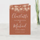 Terracotta signatur bröllopsprogram med vackra strängljus och chic modern typografi. Detta stilrena bröllopsprogram kan anpassas med din speciella bröllopsdagsinformation. Designad av Thisisnotme