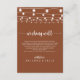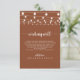 Denna strängljus terrakotta bröllopshjärtans fröjd inneslutande kort är perfekt för ett modernt bröllop. Designen har vackra handmålade strängljus på en terrakotta bakgrund.