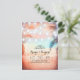 Romantisk solnedgång sparar datumet med hav, handflatan och sand + stringar av ljus hängande på grenarna handflatan träd. Konstruktion av korall- och ljusblå färg-skuggor.