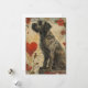 Fånga essensen av nostalgi med detta vintage vykort som visar en värdig Wirehaired Pointing Griffon omgiven av ömtåliga rosor och hjärtan. Den sepia-tonade bilden utstrålar tidlös värme och frammanar en känsla av kärlek och gemenskap. Wirehaired Pointing Griffons alerta och vänliga beteende kompletteras vackert av den mjuka blommiga bakgrunden, vilket gör det till en hjärtvärmande souvenir för hundälskare och vintage-entusiaster.