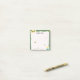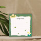 These Botanical Greenhouse sticky notes feature a green border with soft grid lines for neat writing, topped with an adorable straw hat where green leaves gently fall — finished with two cheerful yellow flowers at the bottom. Perfect for adding a fresh, countryside feel to your desk while staying organized in style. Personalize with your name for a unique, custom touch. Ideal for garden lovers, nature fans, and spring dreamers!