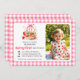 Strawberries, pink bow Berry First Birtday photo Inbjudningar