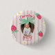 These cute Strawberry “Berry First” buttons with photo of the child feature hand-drawn strawberries in pink and red, along with berry blooms—adding the perfect sweet touch to your party décor.