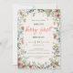 Indulge i vår söthet med vår charmerande jordgubbsgrönt vattenfärgsblomma första födelsedagsinbjudan, där ömtålig blomma blåser ihop med lustigt grönt. Jordgubbarnas och lövens pulserande nav skapar en viskartad stämning, vilket framkallar glädjen och förväntningarna på den första födelsedagen.