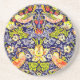 Sandstone-Underlägg med William Morris textildesign Strawberry Thief (1883). Fyra färgstarka fåglar stjäl jordgubbar under en vibrerande blombakgrund. En underbar gåva till djur älskare och Viktorianska konstentusiaster.