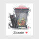Lägg till en pinne med stadskaraktär till din bärbara dator, vattenflaska eller bärbara dator med det här klistermärket med en herrelös katt nära tunna fylld med skrapor.