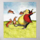 Här har vi en portabel gentleman med ett lågprisflygbolag, som bär ett rött jacka med guld-knappar och plaid byxor, hans arm krymper bakåt och ett ben i luft. En brun kanin växer fram från sin öppna mun, medan två andra kaniner sitter på gräset och en annan flyter genom luft. Edward Lear illustrerar fåniget med omslaget "The Complete Bok of Nonense and Other Verse". Edward Lear (12 maj 1812-29 januari 1888) var en engelsk konstnär, åskådare, författare och poet, känd huvudsakligen för sitt populära nonsensverk, som användan är verklig och uppfanns på engelska ord.