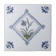Den här plattan visar en blomma i ett delikat diamantformat ram. Det framställs av en uppsättning antika handmålade nederländska Delft-plattor från mitten av 1600-talet. Dessa plattor kan användas som en vägg- eller ryggsplash-platta, kamera runt, underlägg, keepsaklådor och en mängd andra dekorativa artiklar och presentartiklar. (Delft-plattor ser underbara ut när du blandar olika utformningar på ett bakgrundsskikt. Se exempel på våra mediesidor.) Det finns rutor i storlekarna 4,5 och 6 tum.