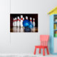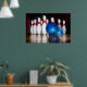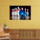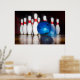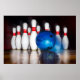 Tio stift ska krossas av den blåa bowlingbollen som kommer in i en tre ficka. Skalgrafik med boll och stift. Perfekt för "bowlers" man gror eller kontor.